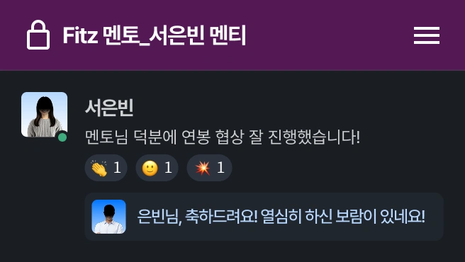 주 1회 1시간 화상 멘토링 (Slack으로 멘토님과 상시 소통)